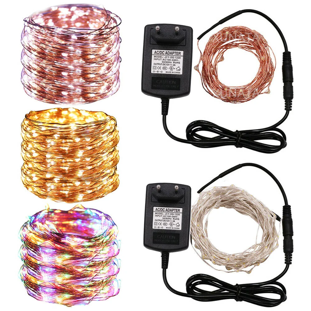 12V 10M 20M 30M 50M Holiday LED String Light Copper Wire Starry Rope Waterproof Flexible Fairy Lights Party Garde+Power Adapter