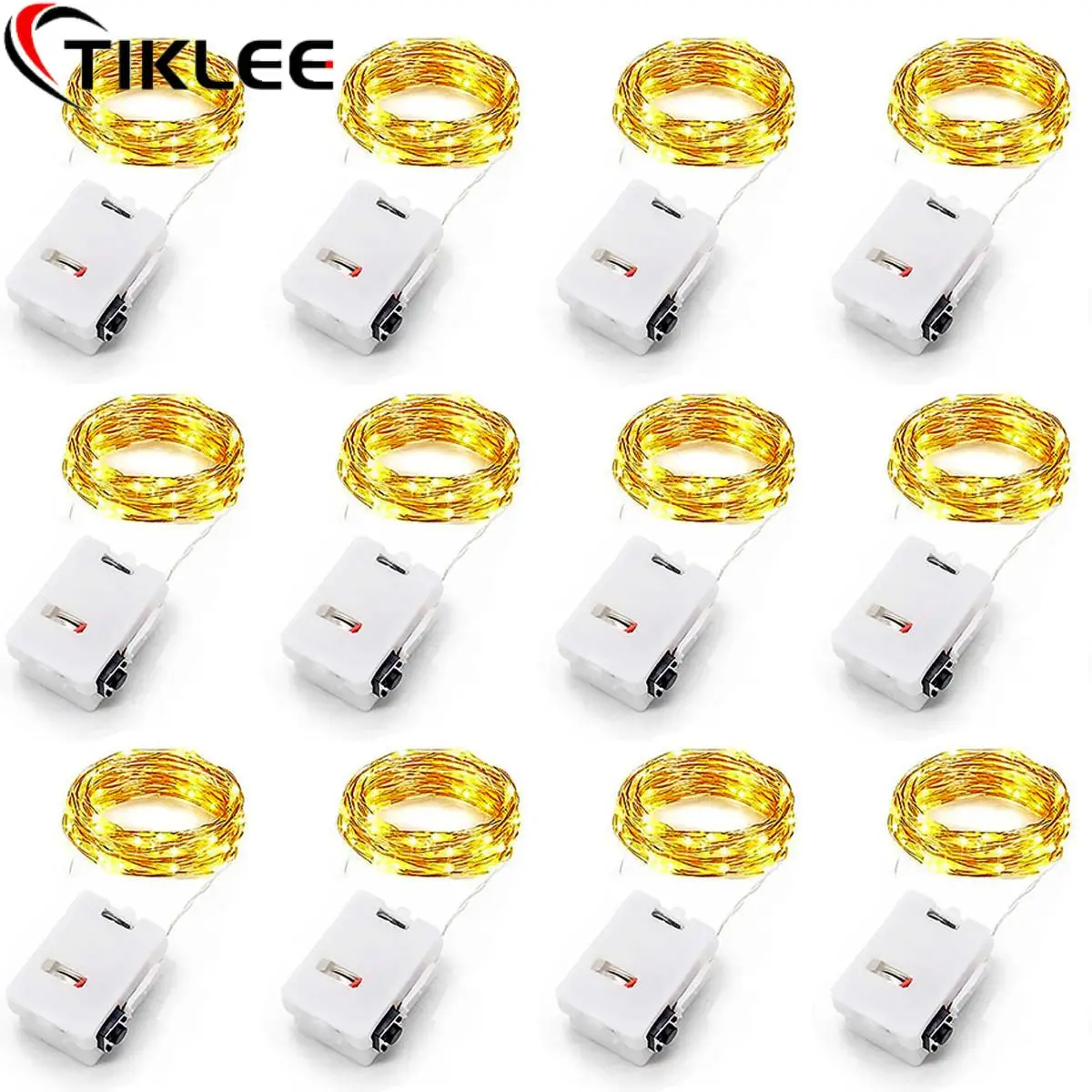 5/10pcs LED Copper Wire String Lights with Battery Outdoor Garland Wedding Light 1M 2M Home Christmas Decoration Fairy Light