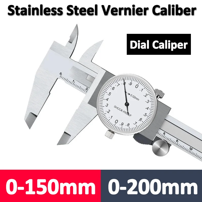 Vernier Calipers 0-150/200mm 0.02mm High Precision Anti-vibration Pachometer Dial Caliper Metal Gauge Ruler Depth Measuring Tool