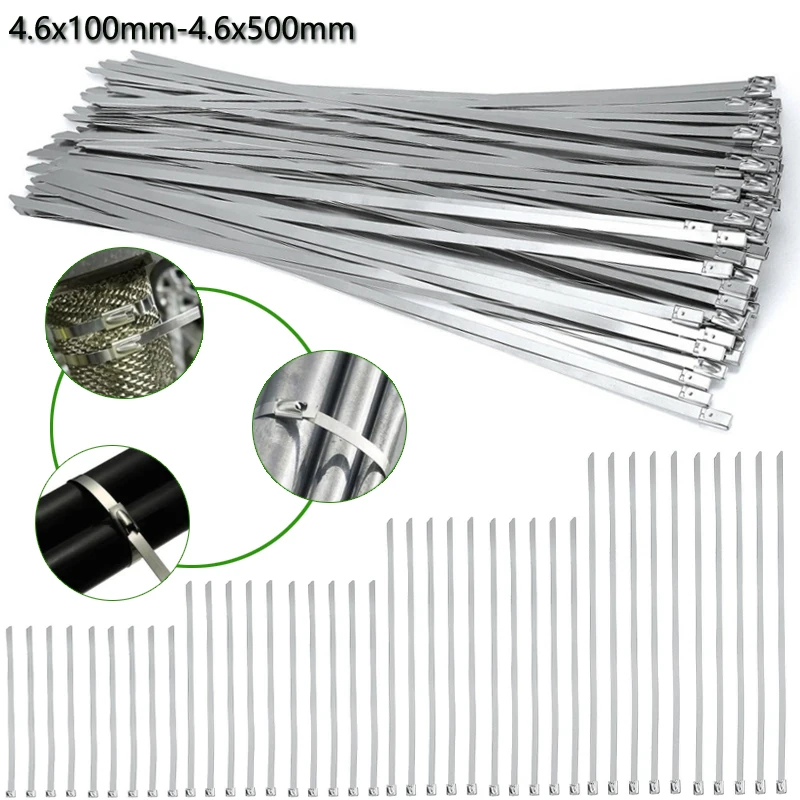 100/10PCS Stainless Steel Cables Tie Metal Self Locking Cable Ties Heavy Duty Fastening Rings Straps For Exhaust Wraps Organizer