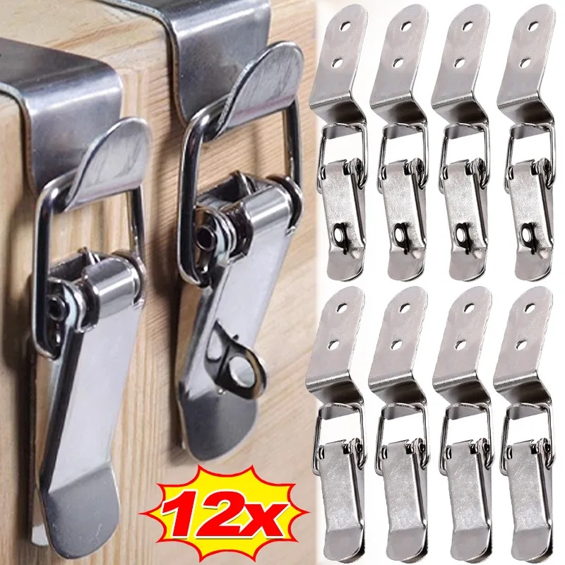 1/12Pcs 90 Degree Duck-mouth Buckle Hook Lock Silver Metal Spring Hasp Latch Catch Clamps Wooden Box Loaded Draw Clasp Hardware