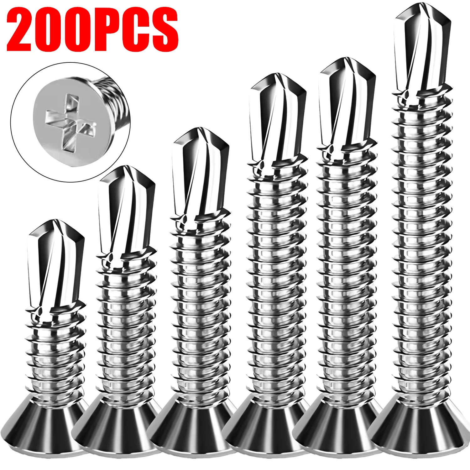 200/20pcs M4.2 Stainless Steel Self-Tapping Screws Cross Flat Head High-Strength Quick Self-Drilling Metal Screw Fixing Fastener