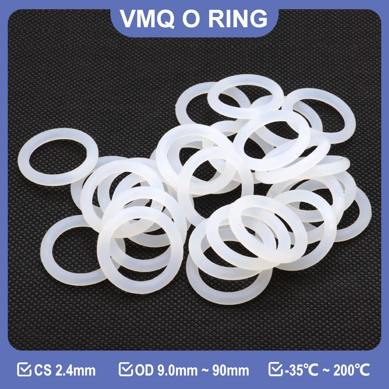 10/50pcs White VMQ O-Ring Gasket CS 2.4mm OD 6mm ~ 90mm Food Grade Silicone Rubber Waterproof Insulated Washer Nontoxic Sealing