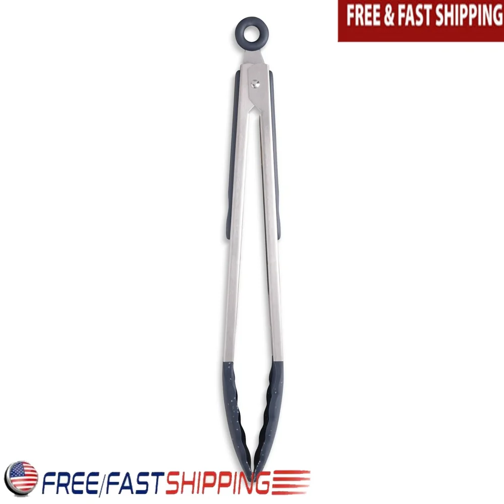 Heat Resistant Silicone Tongs Locking Mechanism Non-Stick Lightweight Durable Kitchen Grilling Salad Serving Utensils Scratch