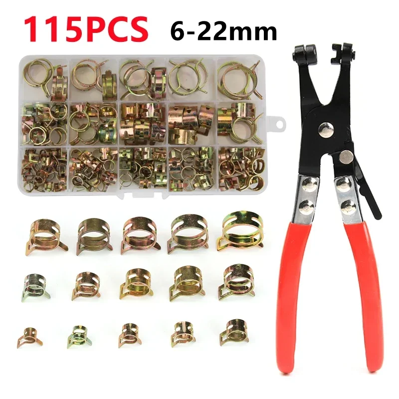 115Pcs Spring Hose Clamp Band Fuel Hose Clips Silicone Pipe Clamp 6mm-22mm or 1pc Clamp Plier (According to the size you choose)  Read more