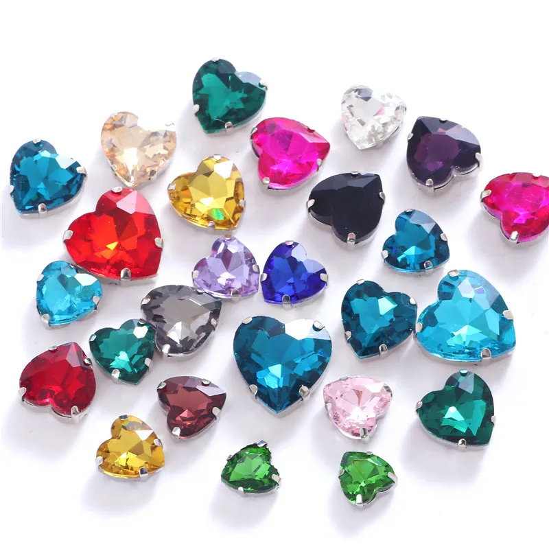 Heart Shape Sew On Rhinestones Crystal Glass With Silver Claw Sew on Stone for Clothing Accessories Shoes with Rhinestones