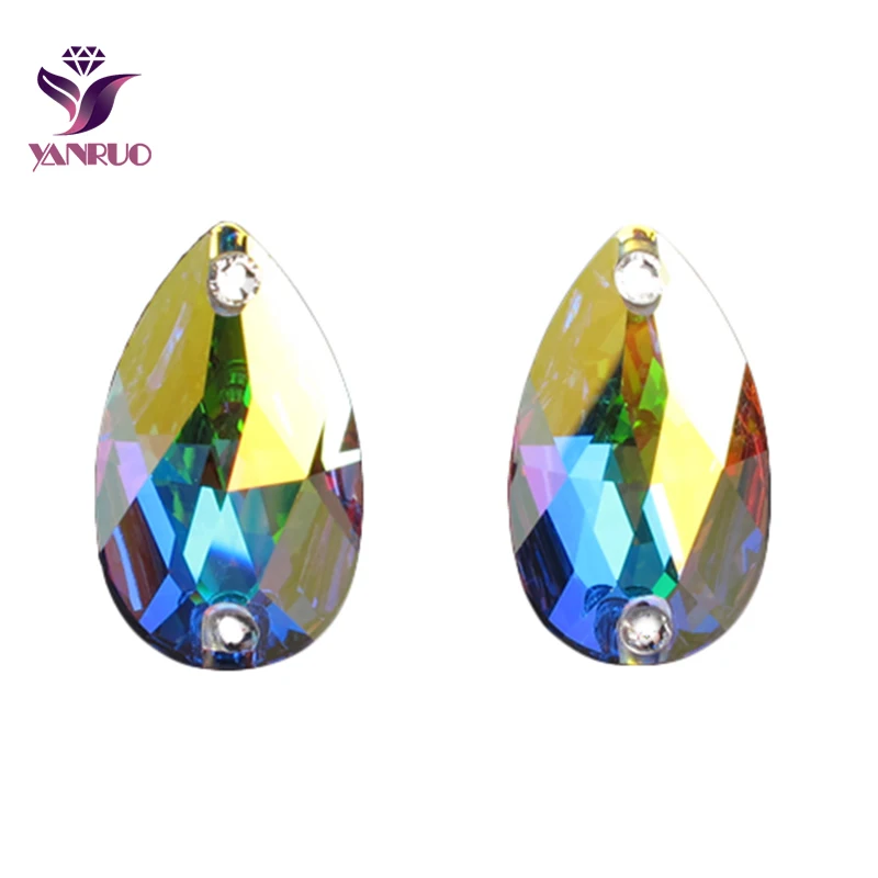 YANRUO 3230 Drop Crystal AB Rhinestones Sew Teardrop Crystals Glass Stones Sew on Rhinestone Flatback DIY Needlework