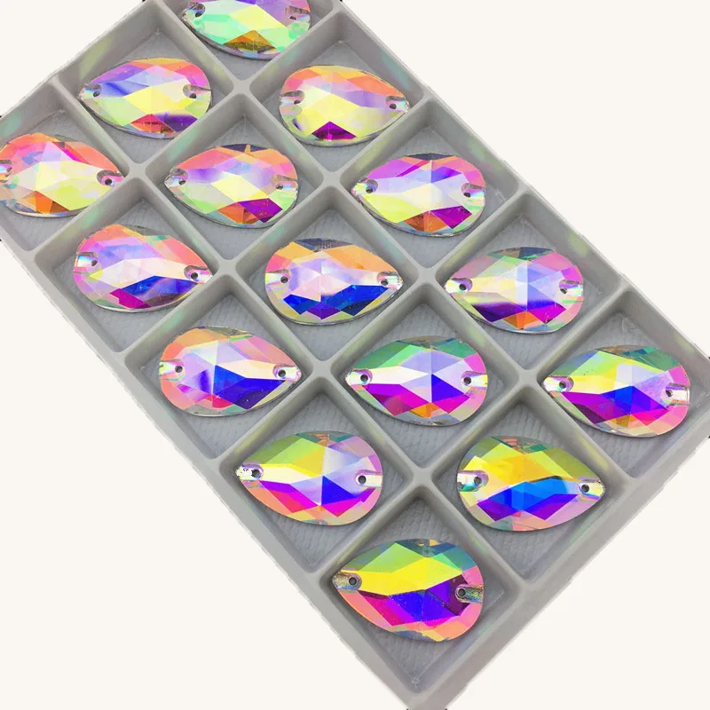 All Size Teardrop Glass Sew On Rhinestones Pear Crystal AB Color Flatback Glass Stone стразы Sewing Rhinestones Wedding Dress