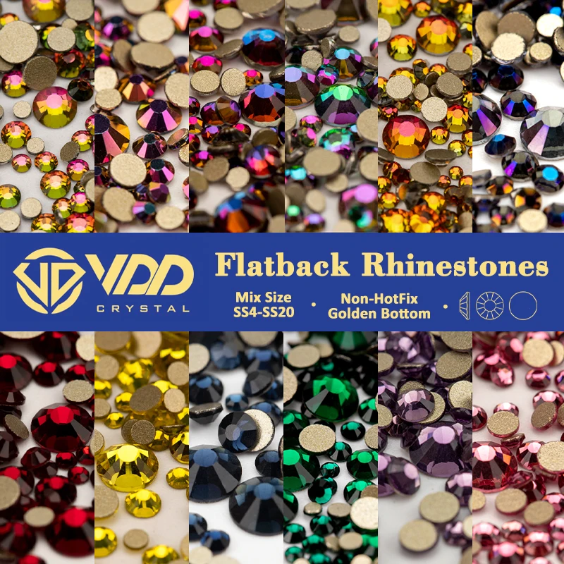 VDD SS4-SS20 Mix Size Clear Crystal Non-Hotfix Gold FlatBack Rhinestones Decorations DIY Glitter Stones 3D Nail Art Accessories  Read more