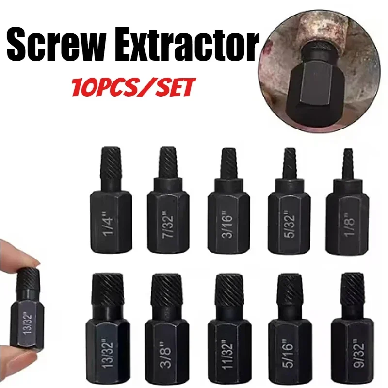 Chrome Molybdenum Alloy Steel Rounded Bolt Remover Hex Head Multi-Spline Bolt Extractor Set 10Pcs Screw Extractor Kit