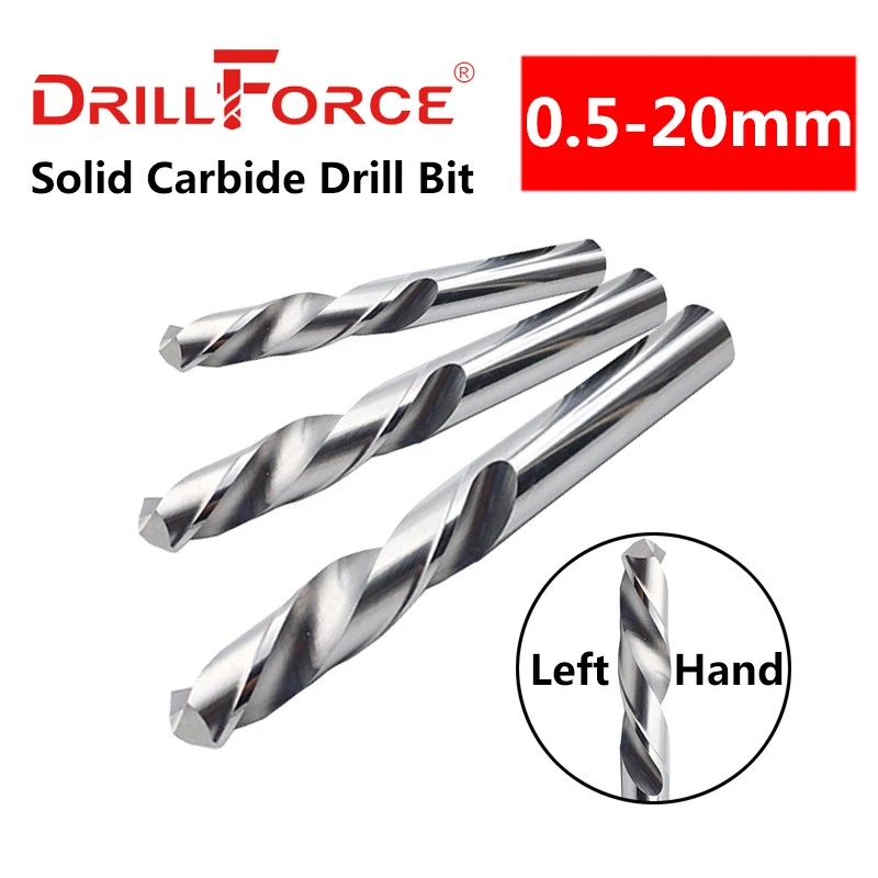 Drillforce 1PC 0.5mm-20mm Left Hand Solid Carbide Drill Bits Reverse Spiral Flute Twist Drill Bit For Hard Alloy Stainless Tool