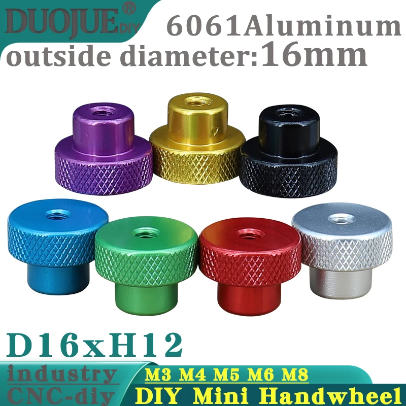 Aluminum Alloy Thin Head Adjustable Toothless Handle Knob Knurled Hand Twisted Nut M3M4M5M6