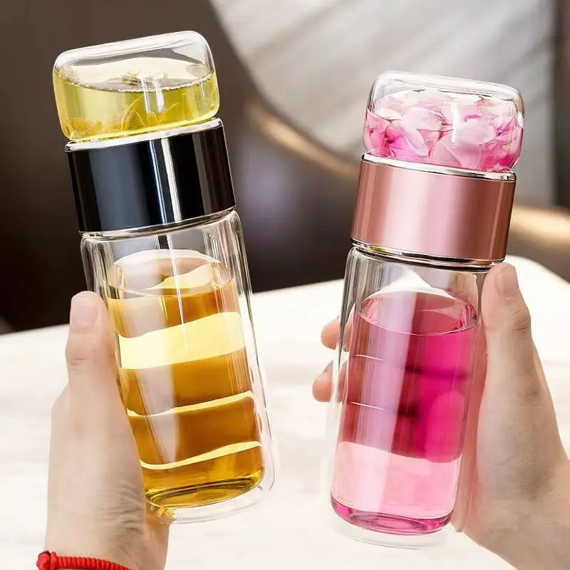 Tea Water Bottle High Borosilicate Glass Double Layer Tea Water Cup Infuser Tumbler Drinkware Water Bottle With Tea Filter