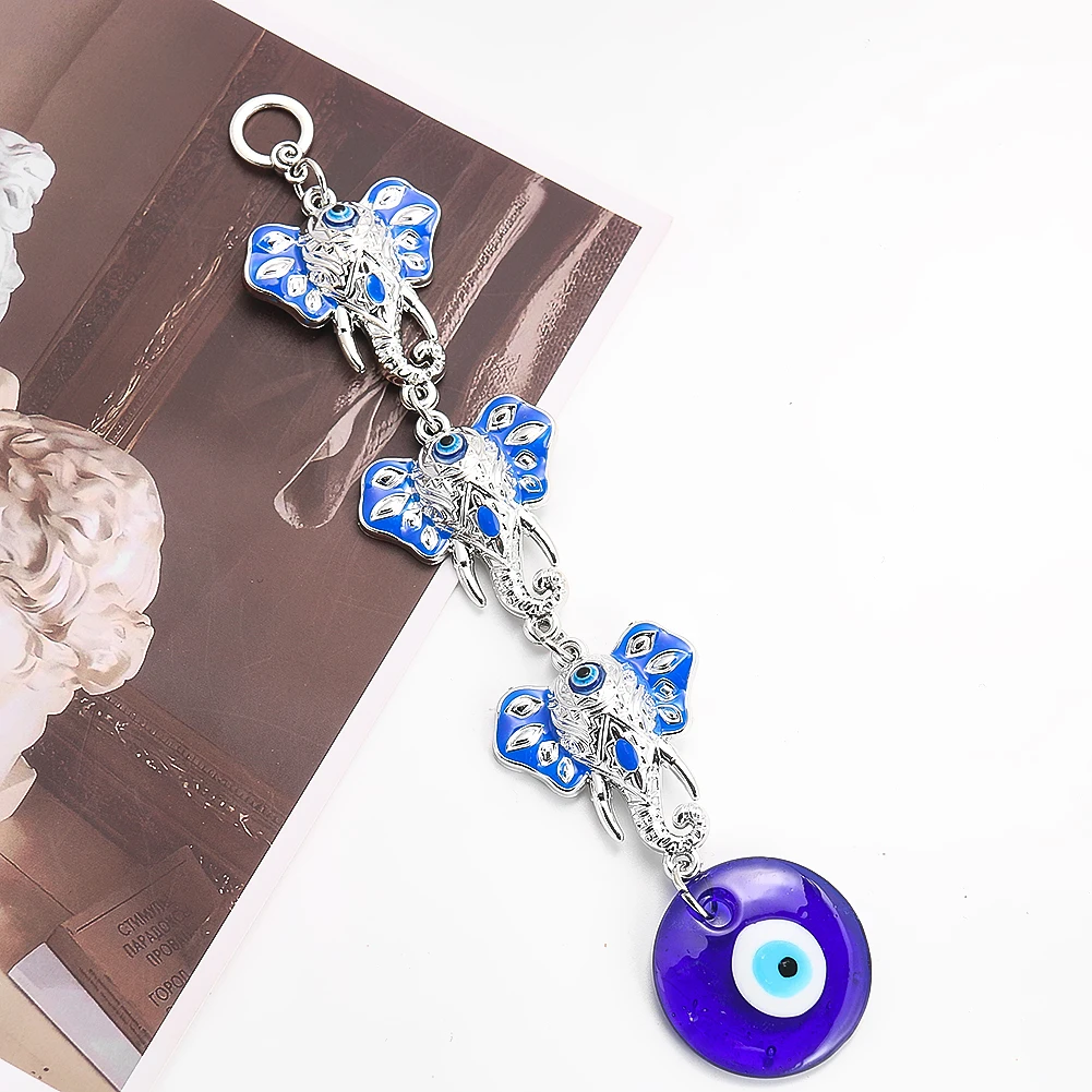 Turkish Glass Blue Eye Elephant Wall Hanging Decoration Car Pendant Lucky Amulet Charm Blessing Protection Decor Craft Keychain