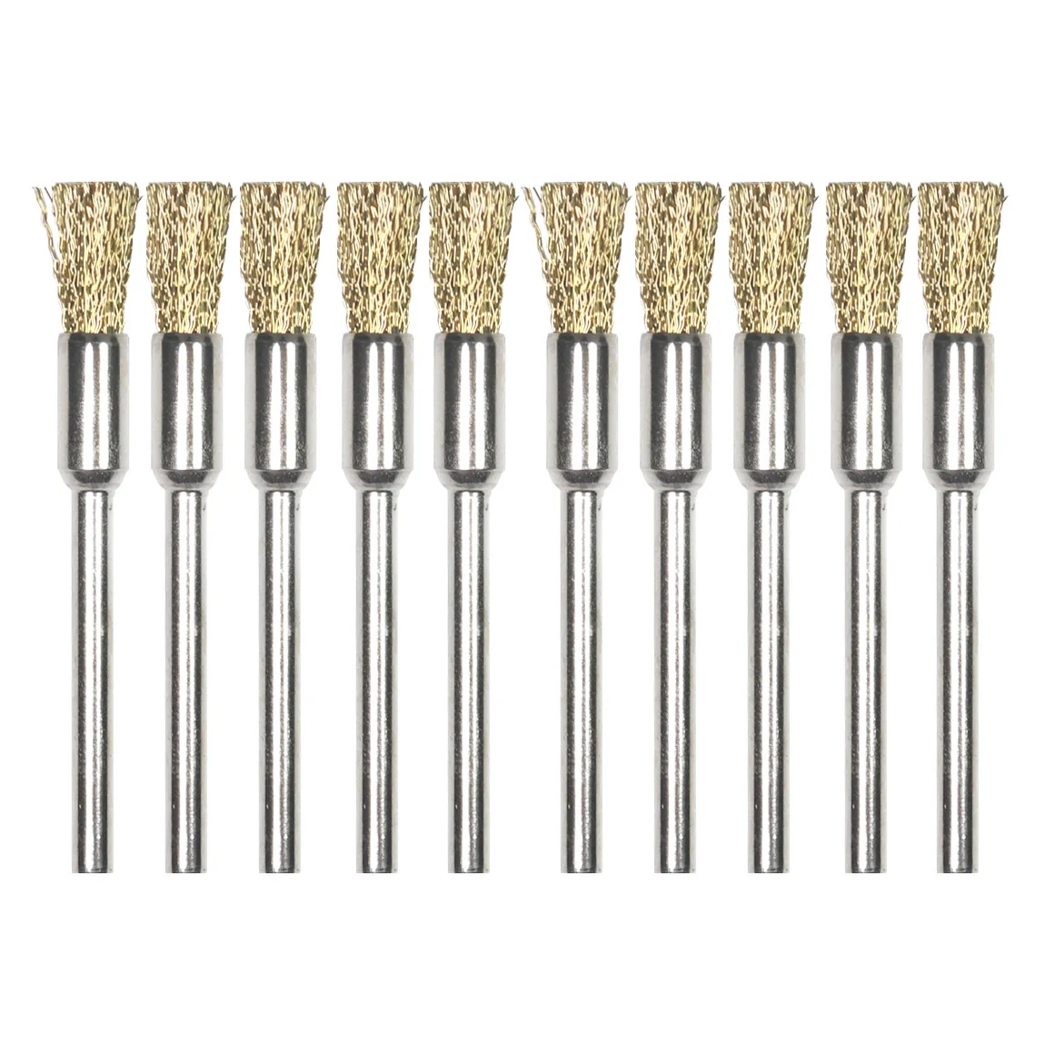 10Pcs 3mm Shank Brass Wire Wheel Brush 5mm Brush Diameter Polishing Brush for Mini Drill Metal Rust Removal Dremel Rotary Tools