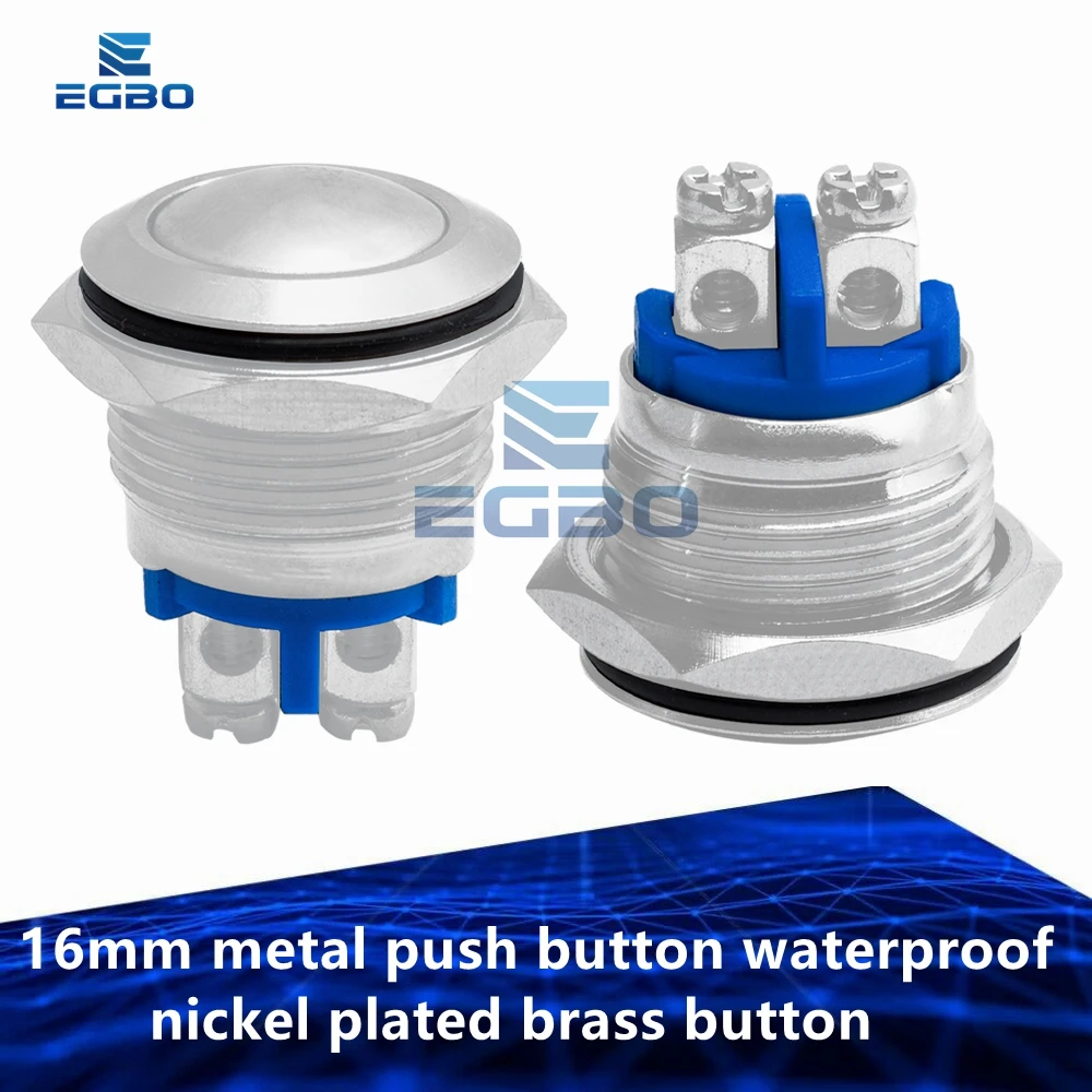 1~5PCS 16mm metal push button waterproof nickel plated brass button switch press button reset 1NO high round momentary 16GT.F.L
