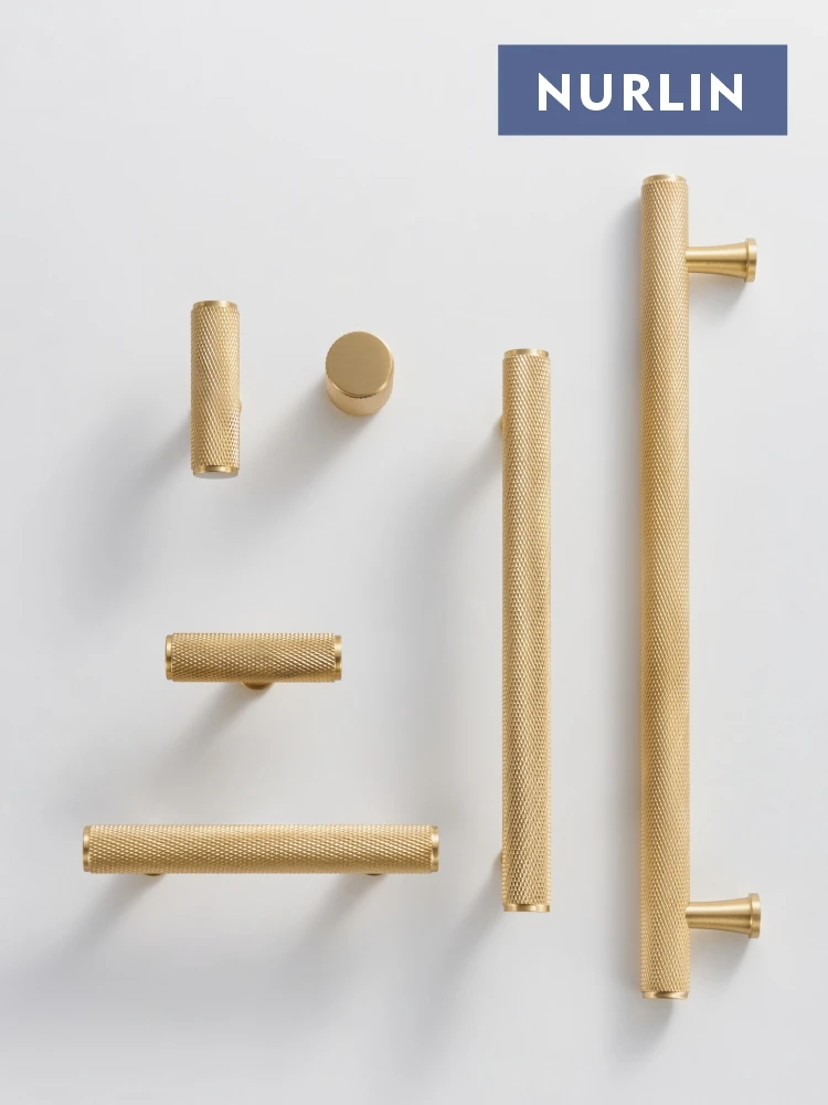Nurlin Knurled Solid Brass British Brand Kitchen Furniture Drawers Door Pull Room Cabinet Knobs Tbars Handle Classic Hot Seller
