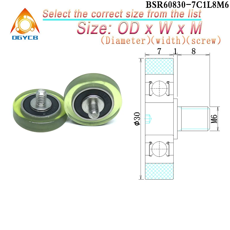 1pcs OD 30 mm Externally Threaded Polyurethane Forming Bearing With M6 Screw 30x7xM3 PU60830-7C1L8M6 PU Coated Roller Wheels  Read more