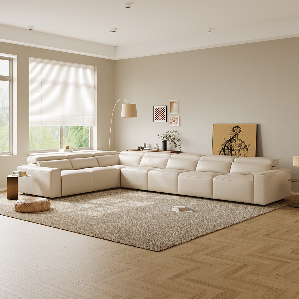 141.14" Power L Shape Recliner Couch With 2 Recliner Seats, Eco-friendly Microfiber Leather, USB/Type C Charging Port, Adjustable Headrest, Living Room, Beige