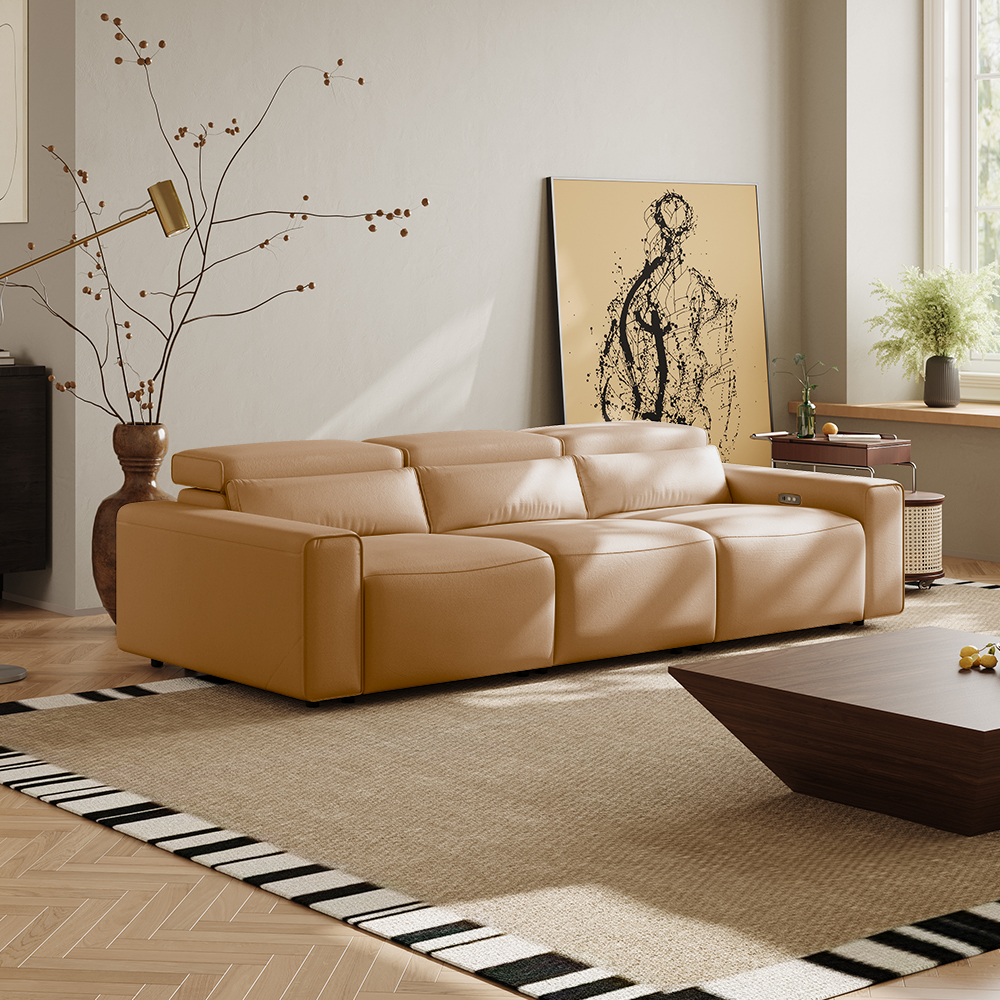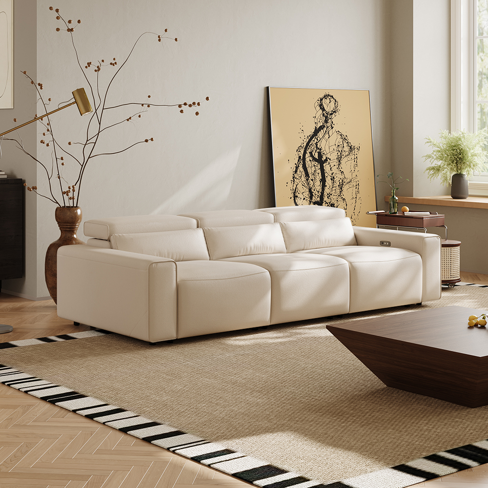 108.65" Power Modular Recliner Couch With 3 Recliner Seats, Eco-friendly Microfiber Leather, USB/Type C Charging Port, Adjustable Headrest, Living Room, Beige