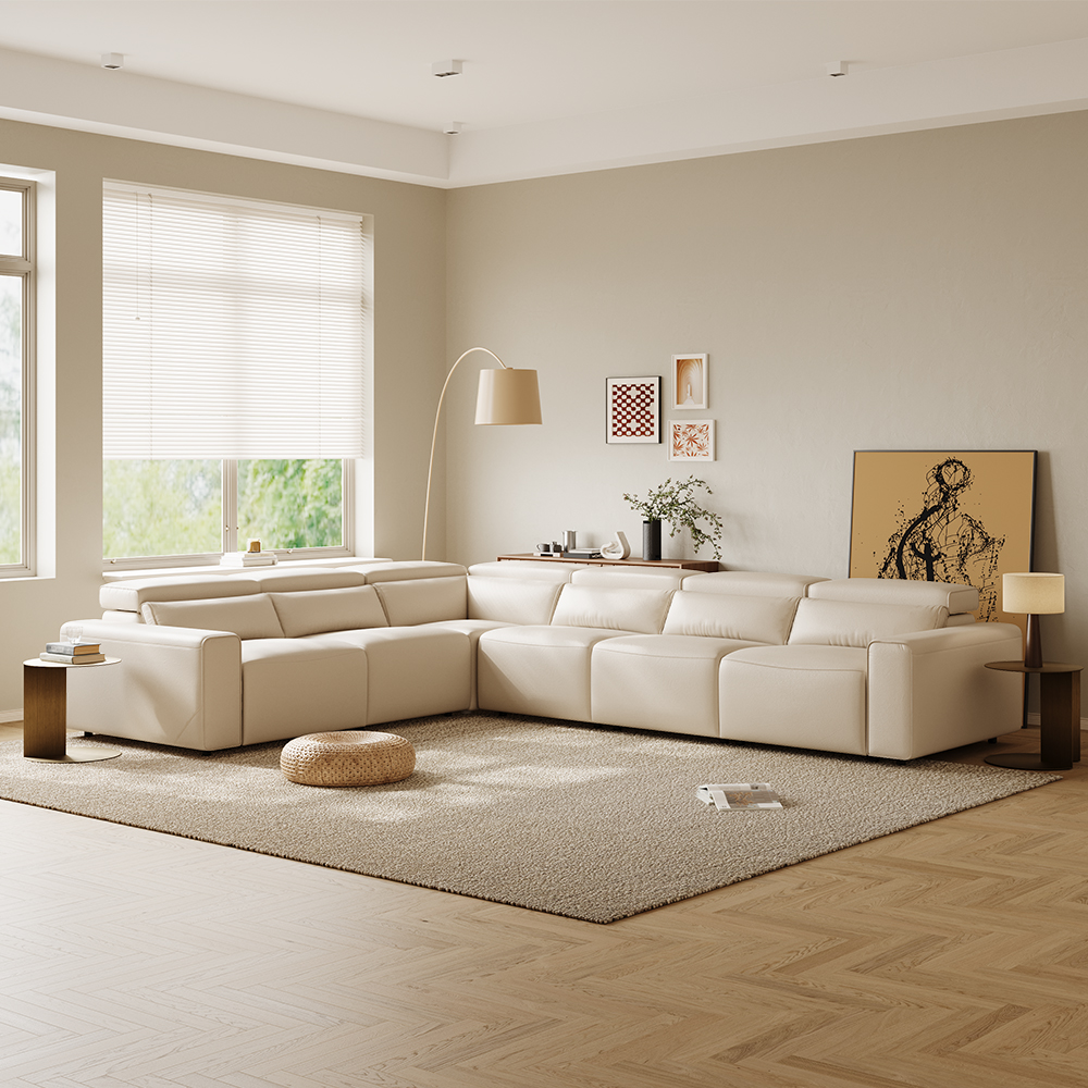 141.14" Power L Shape Recliner Couch With 4 Recliner Seats, Eco-friendly Microfiber Leather, USB/Type C Charging Port, Adjustable Headrest, Living Room, Beige