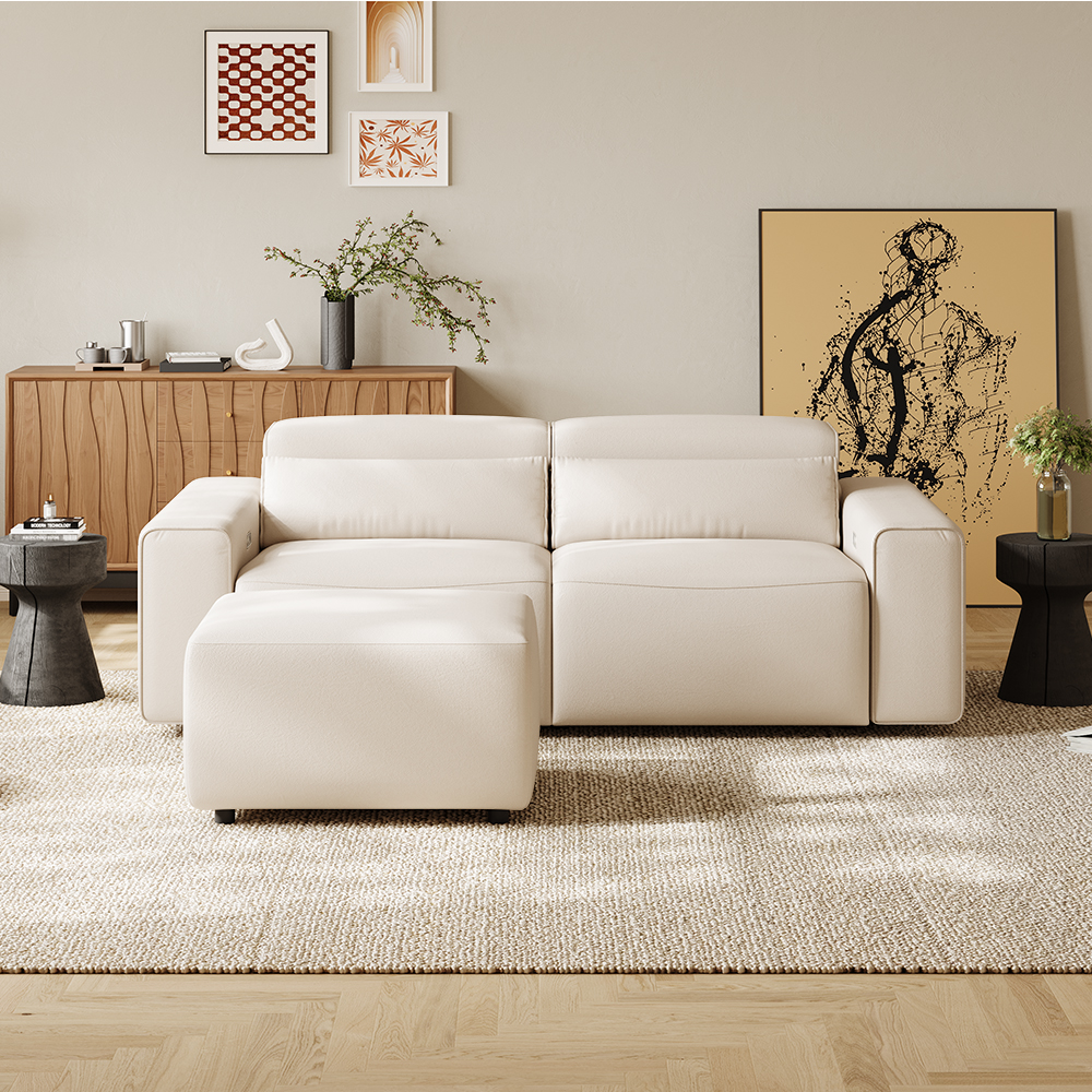 78.74" Power Loveseat Sofa with Ottoman, Electric Couch Recliner with Oversized Deep Seat, Eco-friendly Leather, USB/Type C Charging Port, Adjustable Headrest, Living Room, Beige