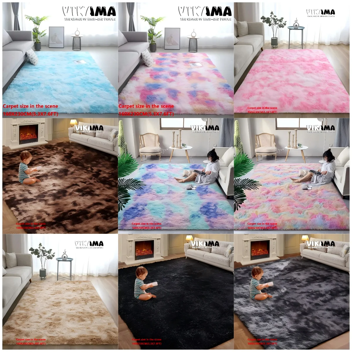 VIKAMA 1PC Silk Wool Rugs Children's Room Living Room Bedroom Tie-Dye Non-Slip Washable Machine Washable Carpet Mats