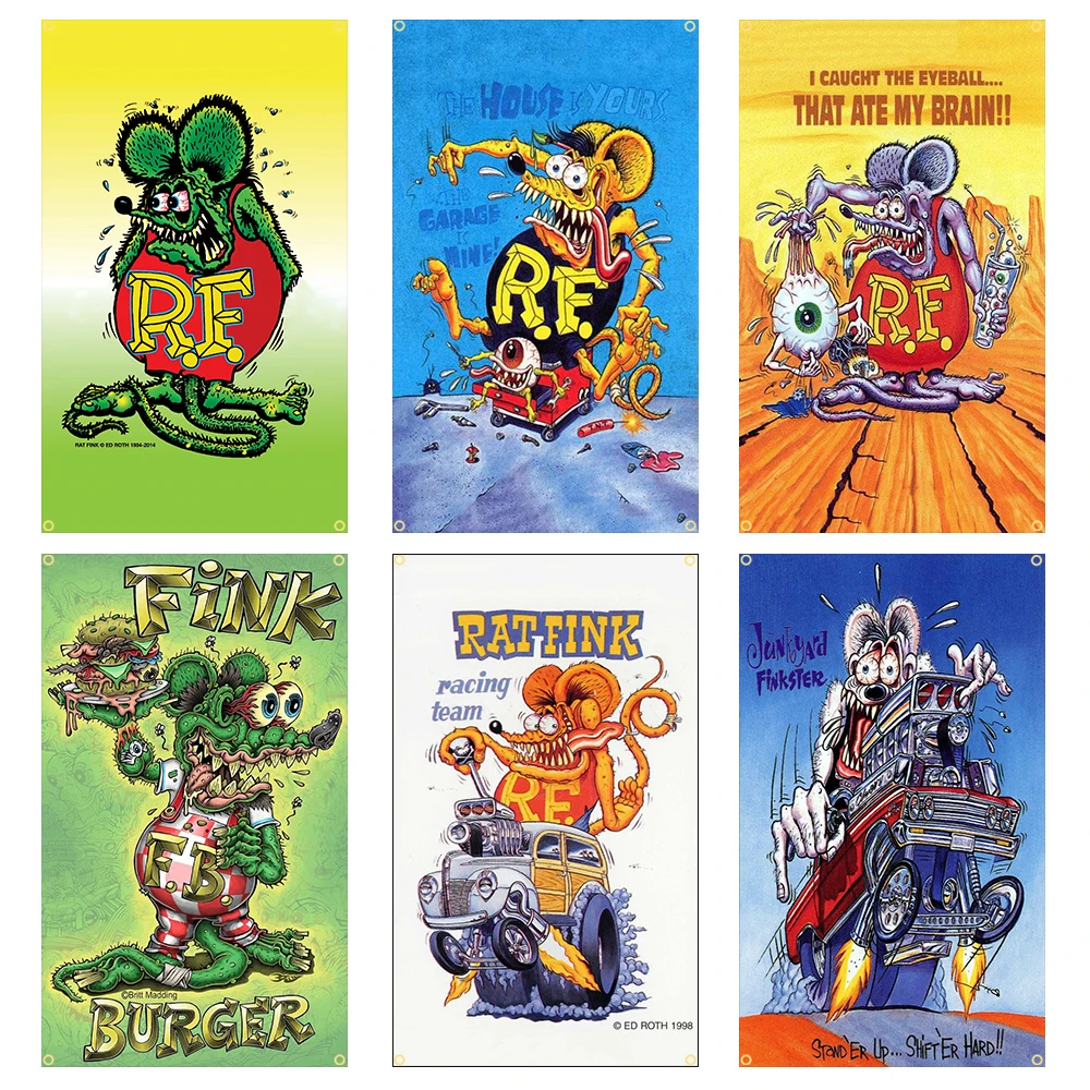 90x150cm Rat Fink Flag Polyester Printed Decoration Banner Tapestry 3X5Ft Jemony