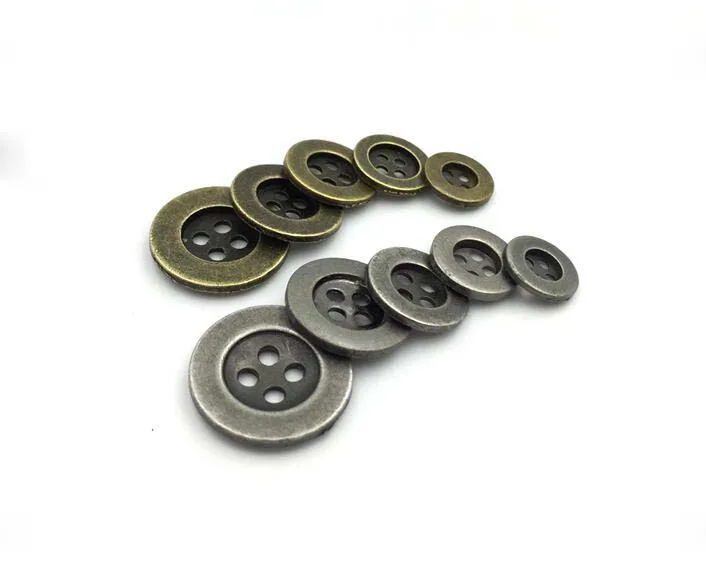 new Zinc metal alloy 10mm/11.5mm/12.5mm/15mm/18mm/20mm Sewing Button 50pcs Metal Buttons Round Antique silver&Bronze 4 Holes