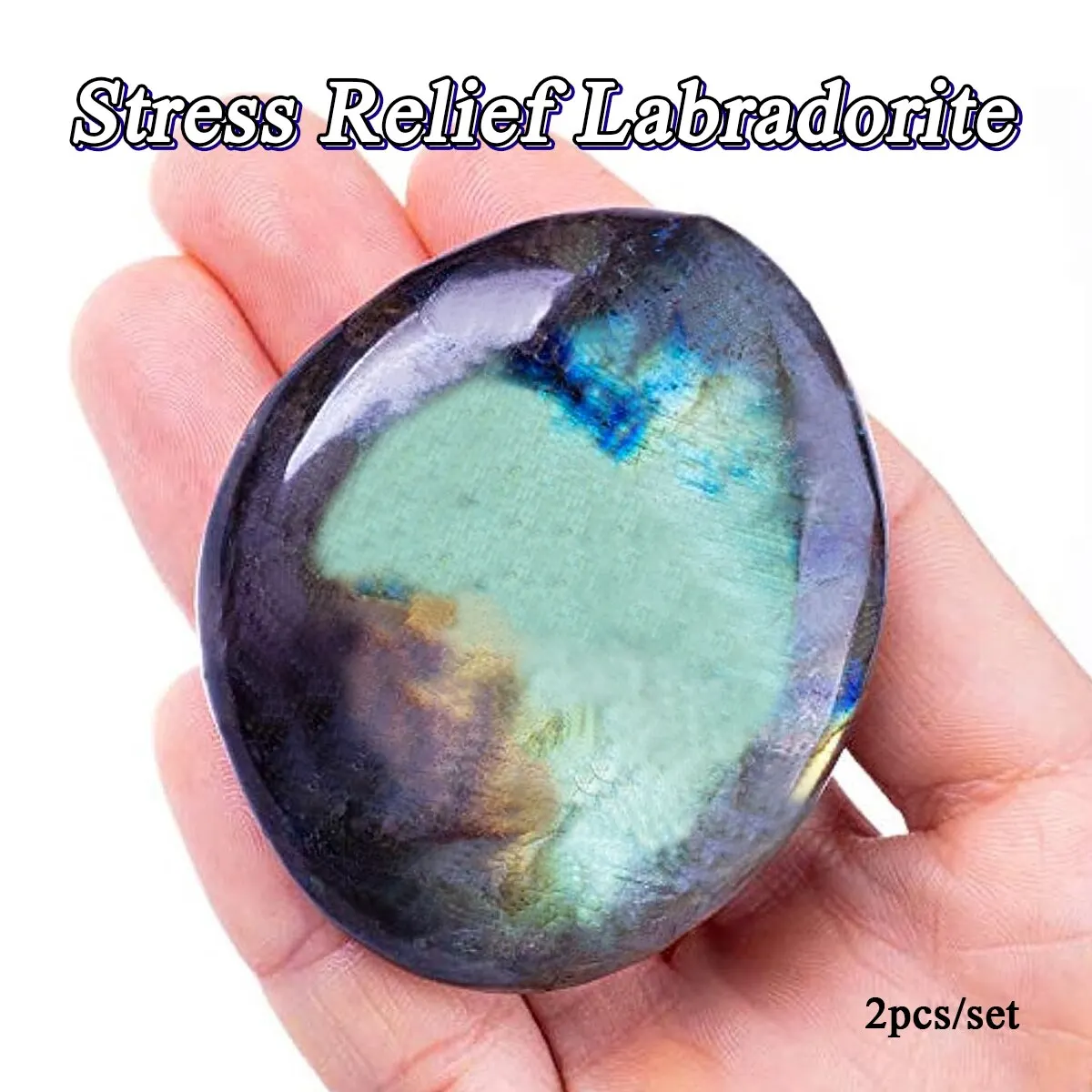 2pcs/set Natural Labradorite Palm Stone - Chakra Reiki Polished Healing Crystal for Stress Relief & Anxiety Therapy