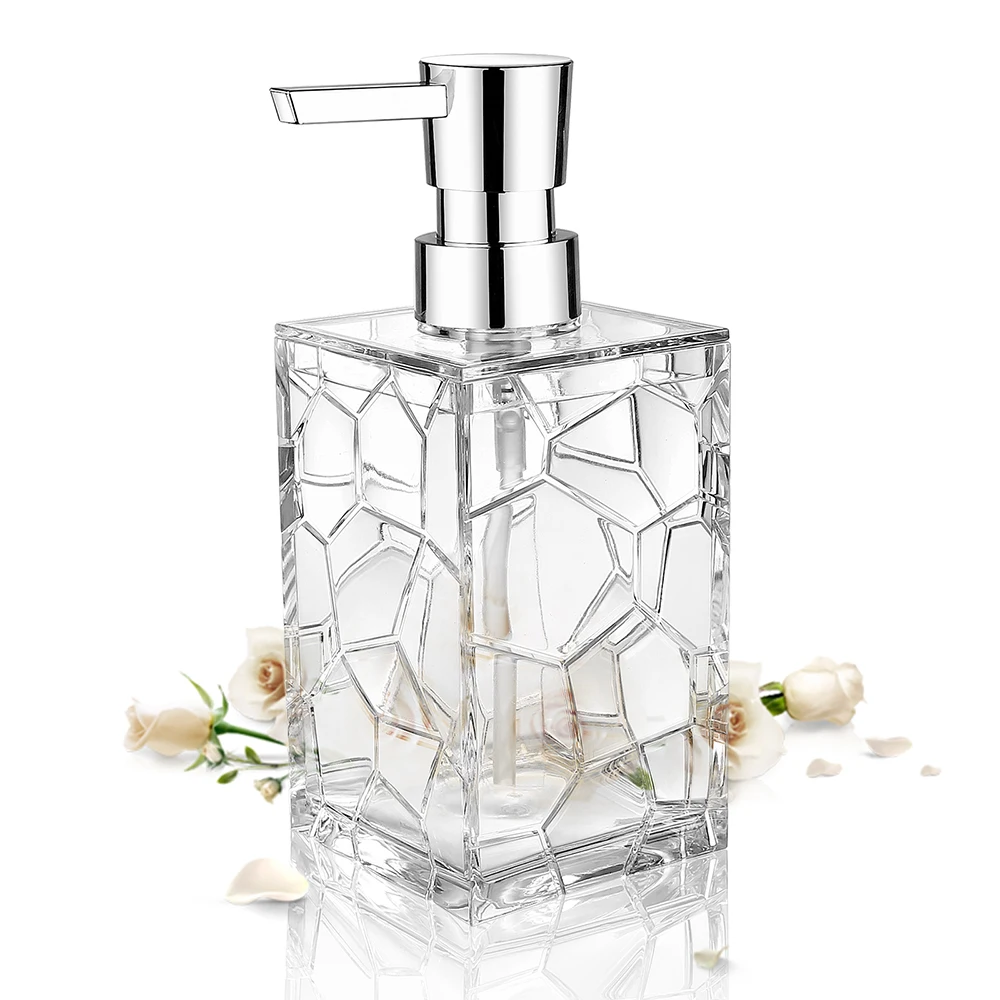 Clear Acrylic Liquid Hand Soap Dispenser(10oz) with Silver ABS Rust-Proof Pump for Bathroom, Kitchen, Countertop Transparent