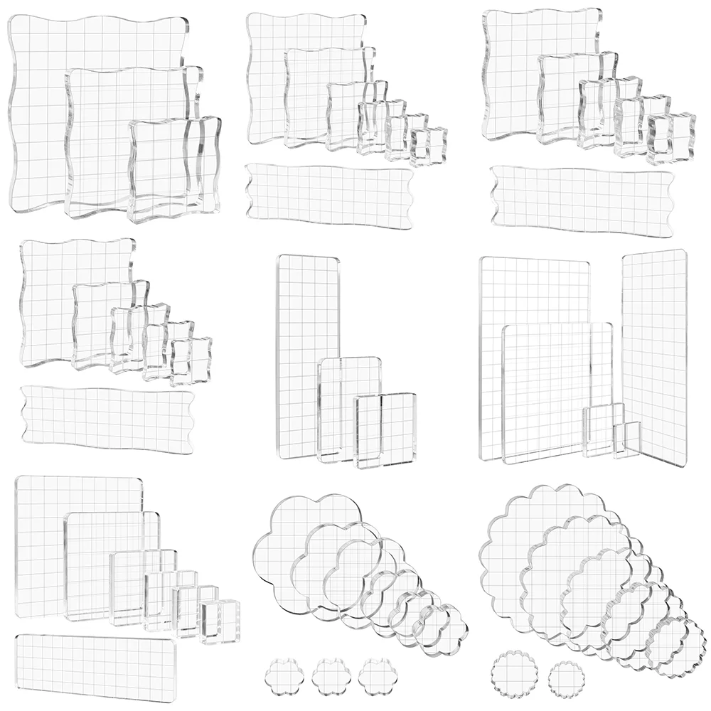 Assorted Sizes Clear Acrylic Stamp Block Kit with Grid Lines Stamp Block Stamping Tools for diy Scrapbooking Crafts Card Making