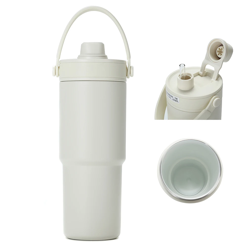 Ceramic Tumbler with Handle Thermal Mug Large 24OZ Straw Portable Cold Coffee Thermos Lined insulated Vacuum Flask Travel Bottle