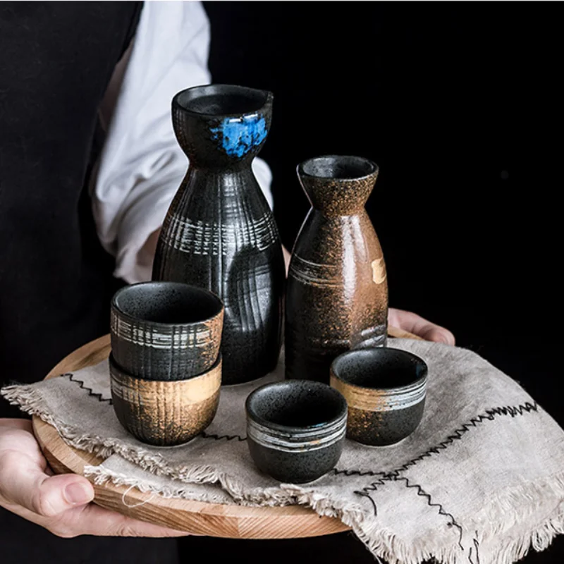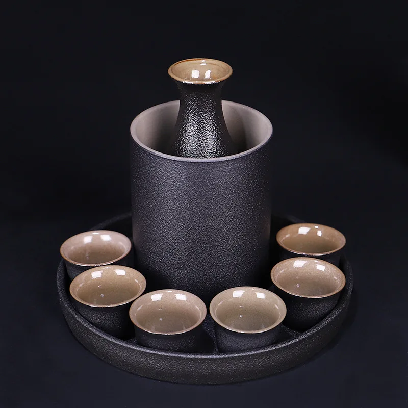 Best-selling Japanese Ceramic Sake Pot Cup Set Black Stoneware Wine Bottle Wine Bottle Cup 7 Pieces/Set