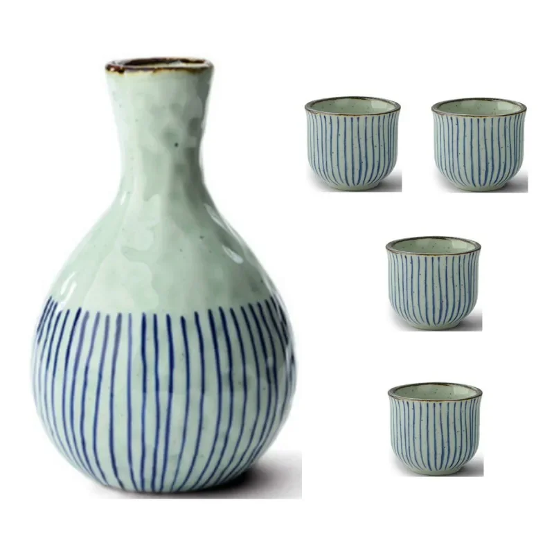 Blue Porcelain Saki Set with 1 Sake Carafe 4 Sake Cups Ceramic Japanese Sake Set Soju Cup Tokurri Bottle 150ml