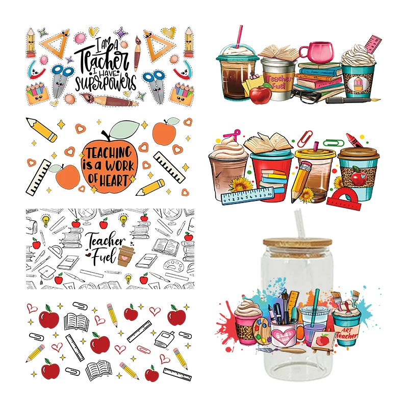 3D UV DTF Transfers Stickers, Cup Wraps, Back to School Printed for DIY Glass, Ceramic Metal Leather, Etc., 16oz D7309