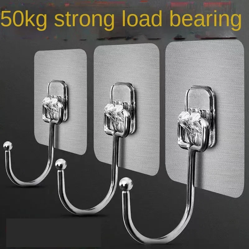 Big Size Hook Self-Adhesive PVC Stainless Steel Transparent Multi-Purpose Wall Holder Door Rack Kitchen Storage Organizer Home