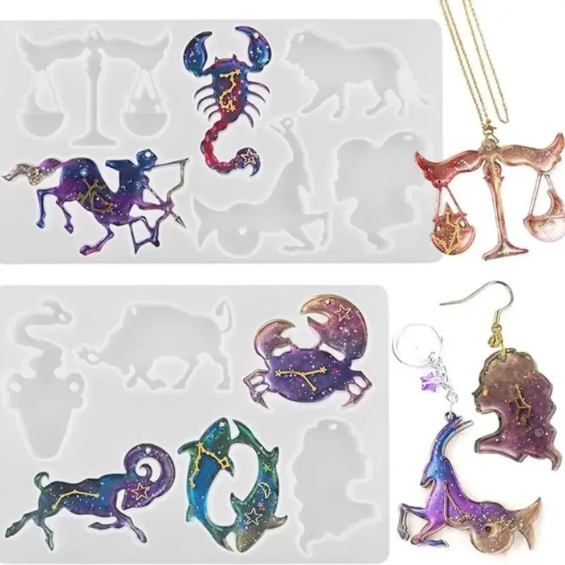 Zodiac Keychain Resin Molds, 12 Constellations Silicone Molds, Animal Star Sign Epoxy Resin Casting Molds with Holes for Keychai  Read more