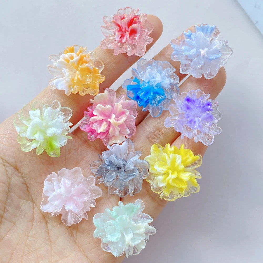 22mm Resin Colorful Gradual Candy Color Lotus Flat back Flower Rhinestones Figurines Scrapbook Ornaments DIY Bow Clothing Crafts