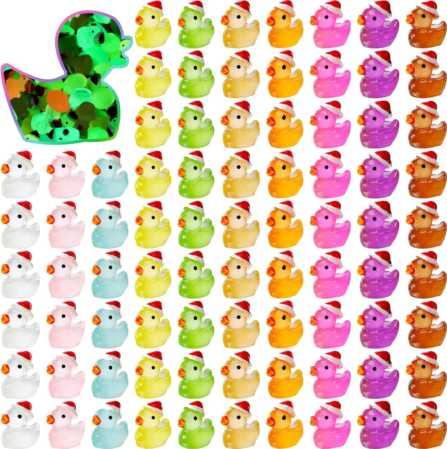 100/50Pc Christmas Luminous Mini Resin Ducks Glow in The Dark Ducky with Christmas Hat for Micro Landscape Home Party Decor