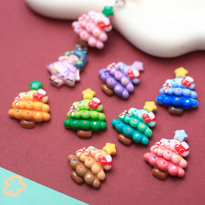 100pcs Simulation Christmas tree Flat back Resin Cabochon Phone Decoration Crafts DIY Scrapbooking Accesories