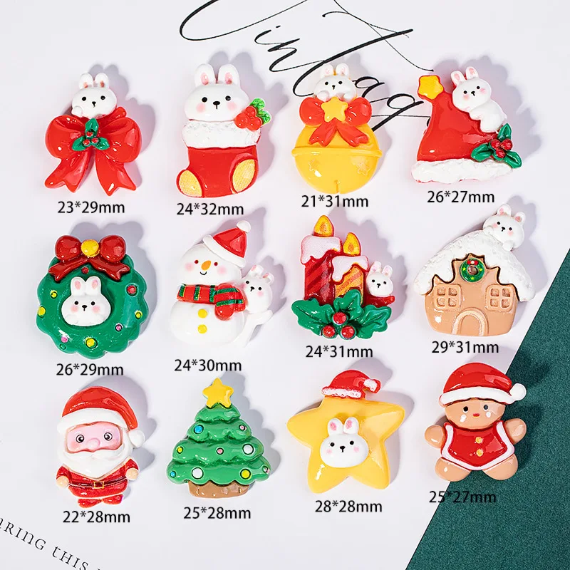 100pcs Kawaii Christmas Rabbit Series Flatback Resin Cabochons Scrapbooking DIY Jewelry Hairpin Craft Decoration Accessories