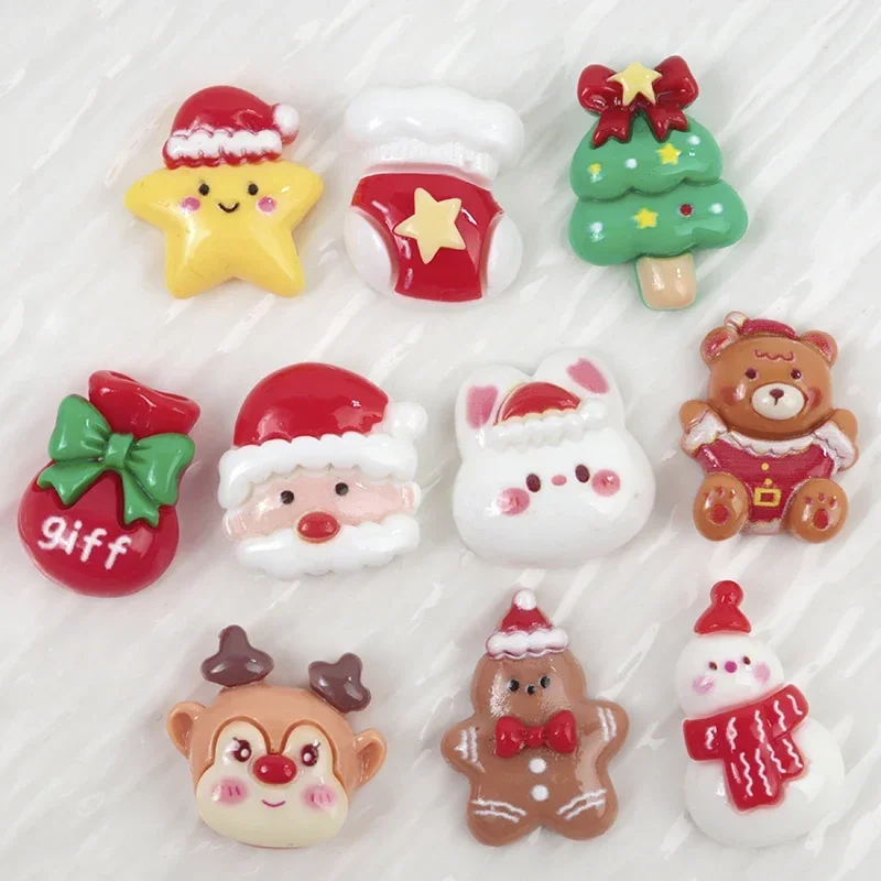 10/100Pcs Cartoon Christmas Series Flat Back Resin DIY Craft Cabochons Scrapbook Hairpin Accessories Embellishments Phone Decor