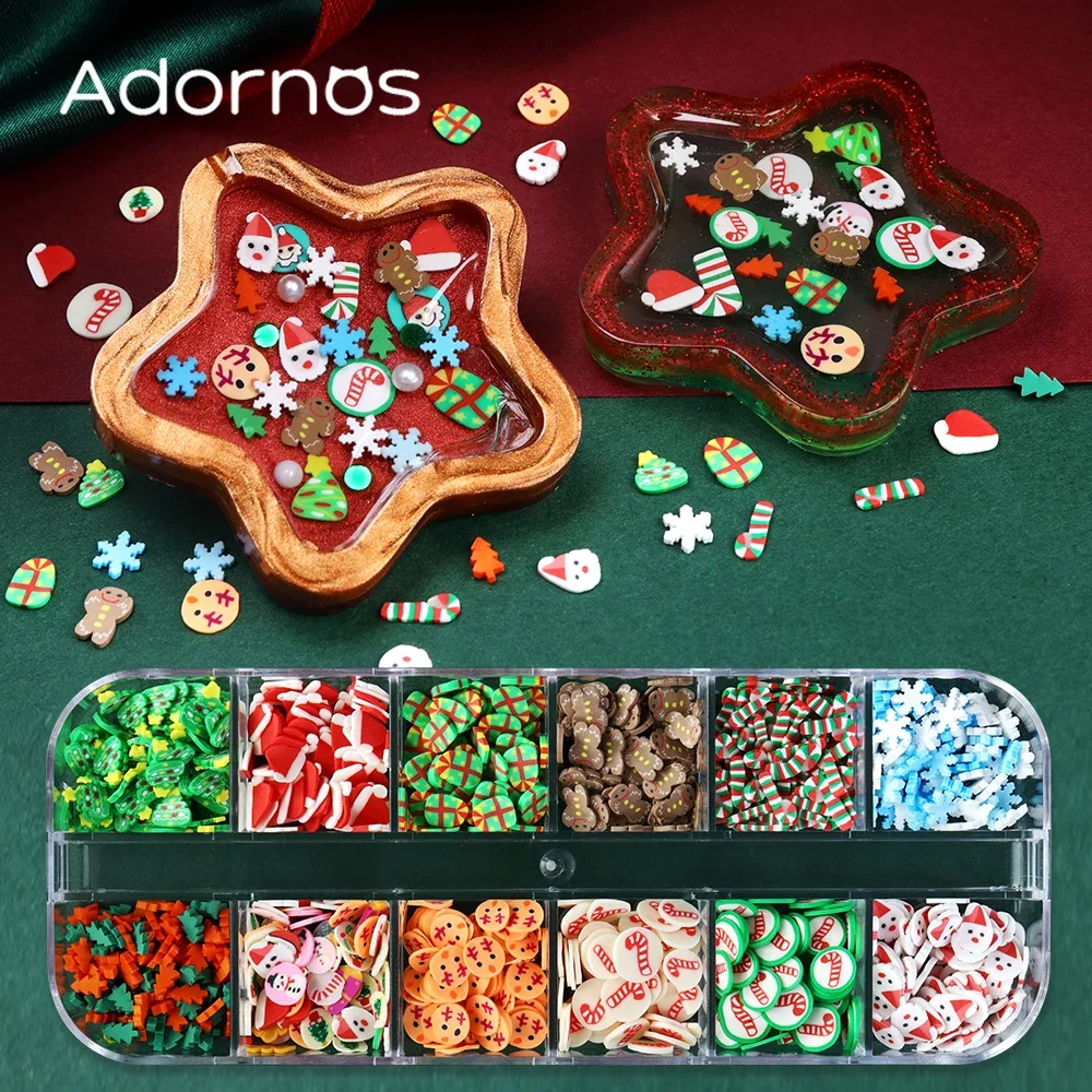12 Grids Christmas Soft Pottery Epoxy Resin Filling Xmas Tree Snowflakes Crutches Kawaii Resin Flakes DIY Pendant Crafts Making