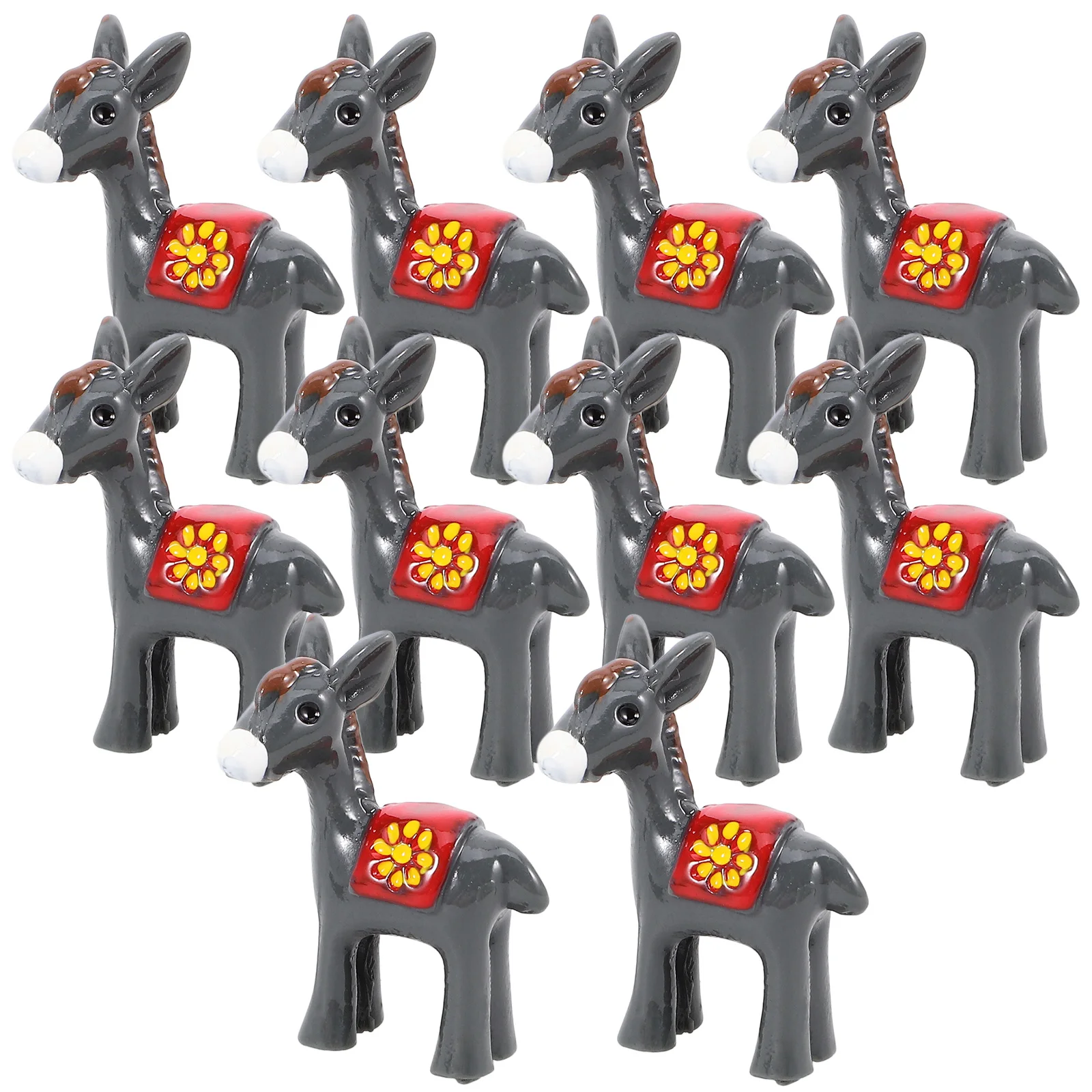 10 Pcs Miniature Donkey nament Resin Donkey Figurine Cute Mini Donkey Statues Garden Adornment Wedding Decoration Small Animal