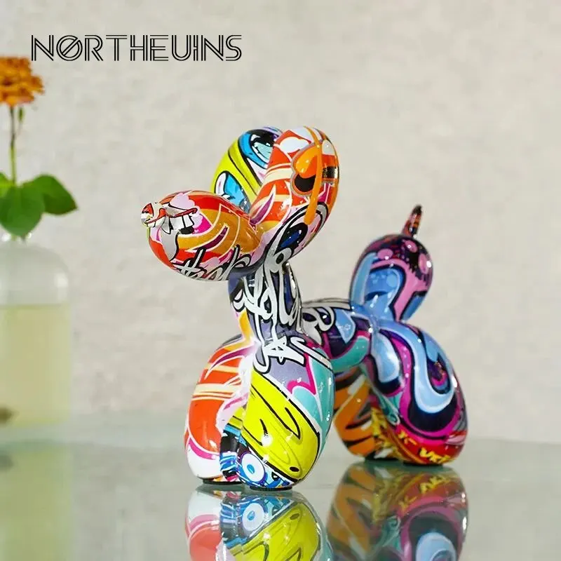 Resin Graffiti Balloon Dog Figurines for Interior Home Desktop Decoration Painting Colorful Art Animals Statue Crafts Decor Item