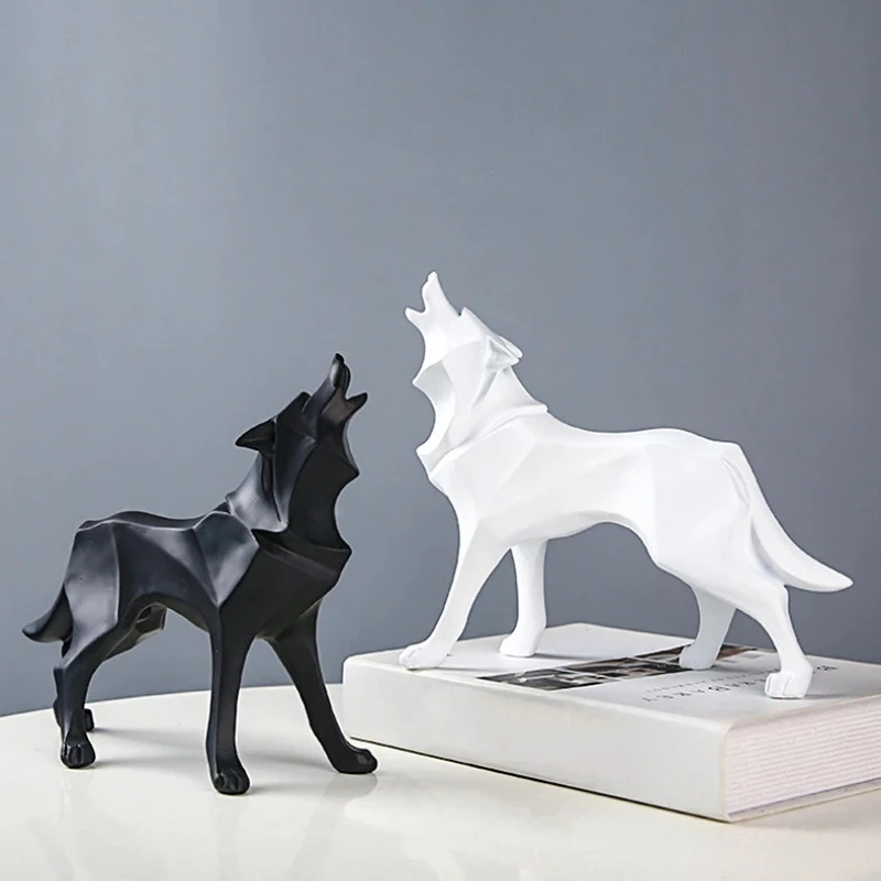 Modern Abstract Wolf Figurine - Geometric Animal Statue for Home or Office Resin Wolf Sculpture Handicraft