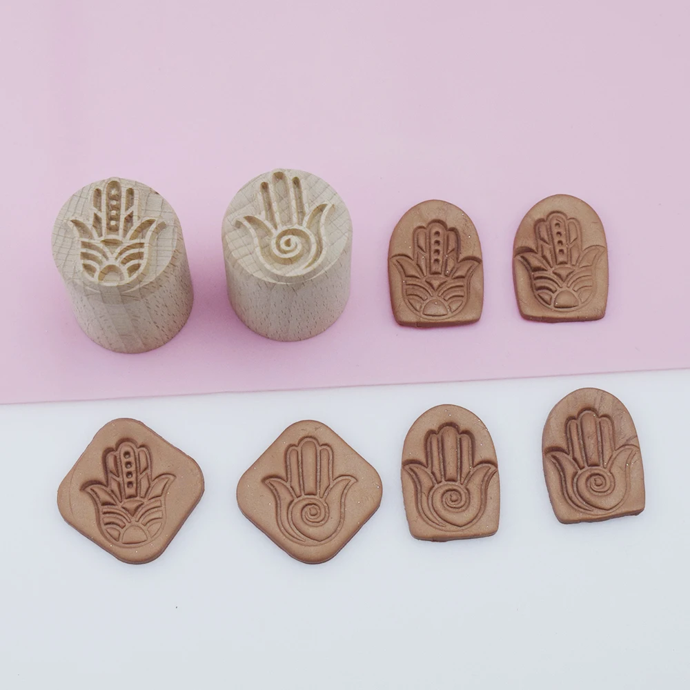NEW Pottery Tool Fatima Lucky Hand Texture Block Print Emboss Carved Wooden Clay Stamp Argil Tools for Ceramics 3.5CM Round