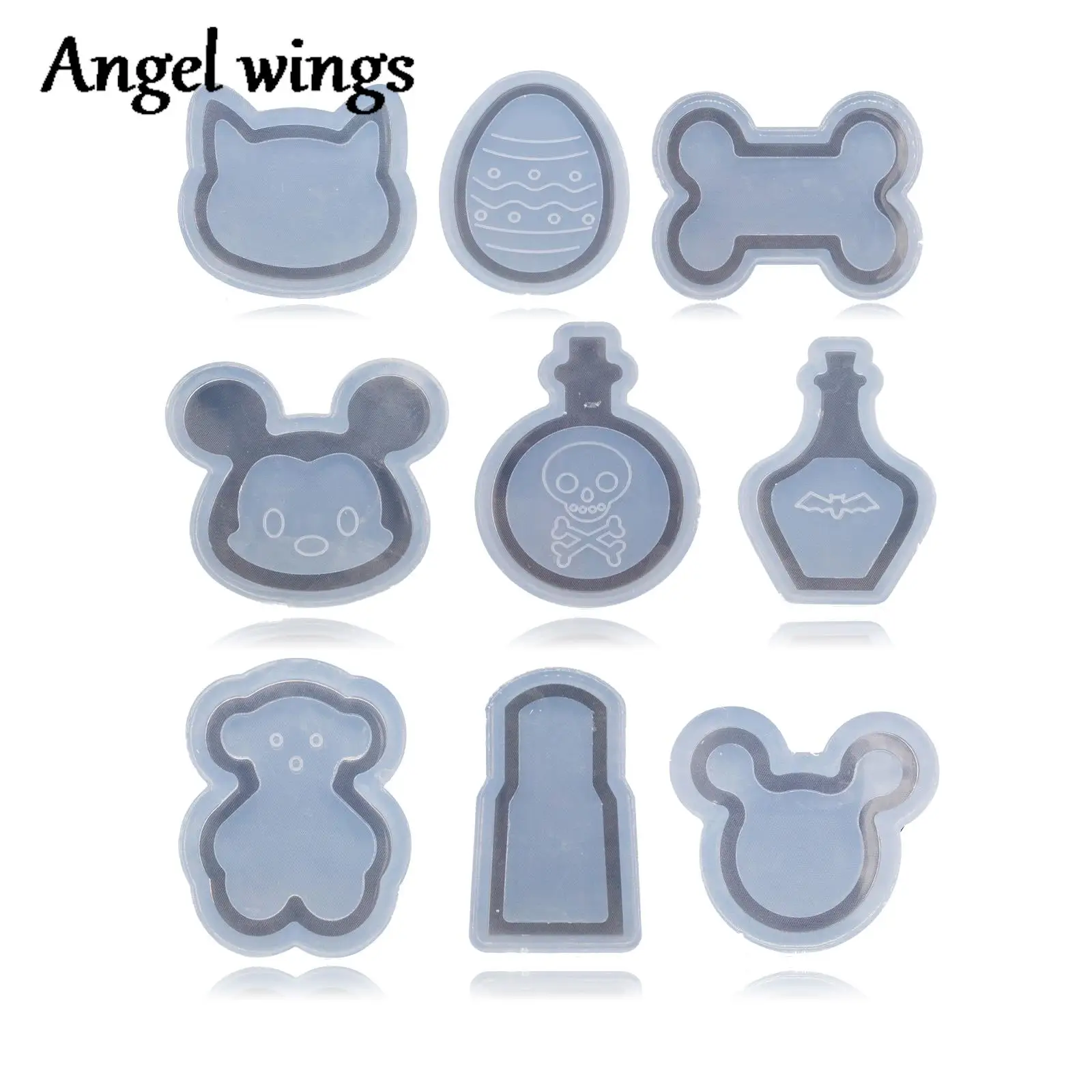 DY1694 Shiny Backed Shaker Silicone Mouse Head/Cat Head/Egg/Dog Bone/Bottle Mold Resin Crafts Epoxy Keychains Pendant Molds
