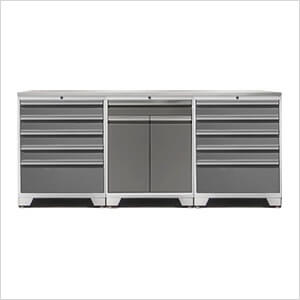 NewAge Garage Cabinets PRO Platinum 3-Piece Work Station with Stainless Steel Top
